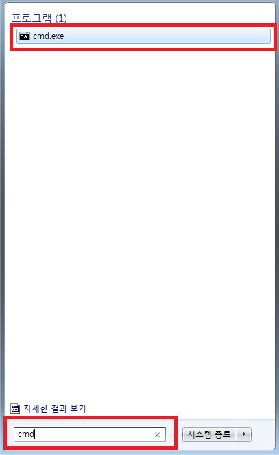 cmd 를 치고 엔터를 치면 도스 창이 열리는데