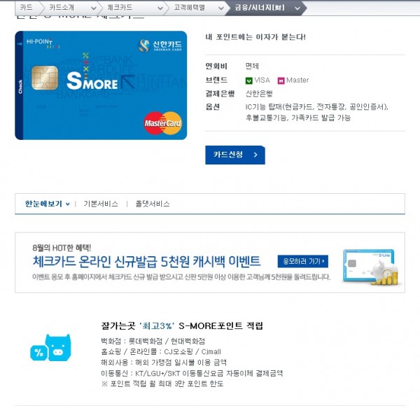 신한 S-MORE 카드 인데요 '최고 3% 적립'